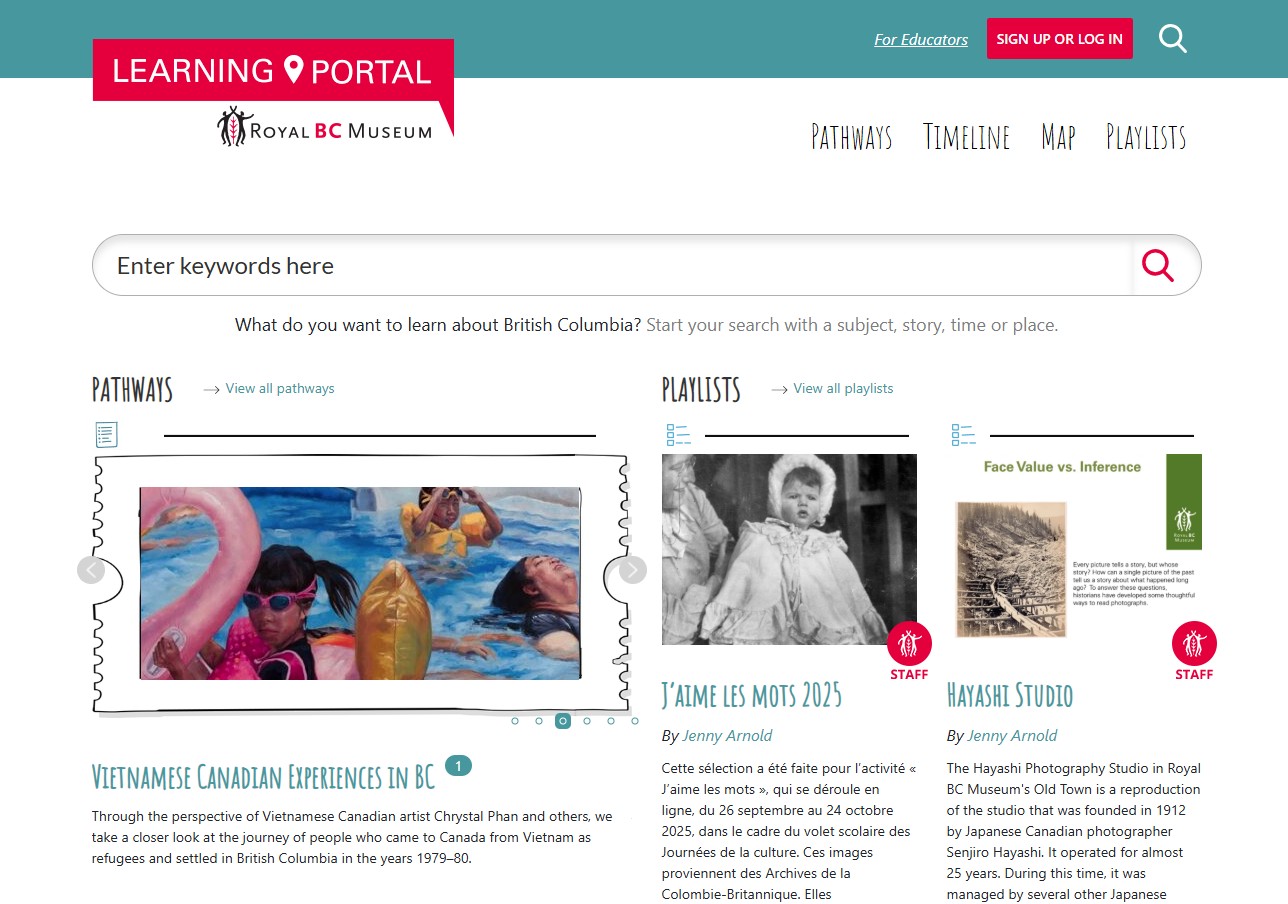When we launched the Learning Portal 10 years ago, we had high hopes and a clear direction to make our collections, research and stories more accessible to British Columbians. As the provincial museum with a mandate to reach British Columbians across the province, our location on the southern tip of Vancouver Island can be an impediment, especially for one of our largest audiences: students and teachers. A 2013 report from the BC Ministry of Education recommended that the museum design and build a website to better reach this audience.