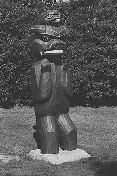 Ceci est une des deux figures tombales que Charles F. Newcombe acquit à Talio dans le bras de mer de South Bentick en 1913. Elle devait marquer le lieu d’ensevelissement d’une personne importante et représenter les emblèmes de sa famille.