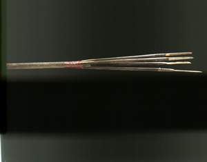 Birds were captured in the James Bay area using a spear with multiple barbed points such as this one. RBCM: 2419 |