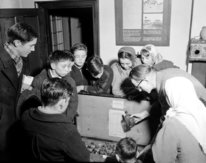 Picture: School class visiting Helmcken House in 1949, Mr Flucke is showing the medical Chest.
